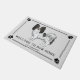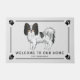 3色のコート色のデステイのオリジナル漫画イラストレーションパピロンは、明るい灰色の背景色で犬を育てる。デザインは二重線スタイリッシュで囲ま縁どれる。隅には犬の前足のプリントシルエットもある。画像の下には、2つのパーソナル化可能な文字領域がある。前絵の色やプリント、縁ど文字や背景は他の色に変えもしる。