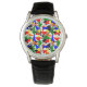 この時計は、赤、黄、オレンジ、青、緑の三角形のコラージュのバウハウスデザインを持っている。