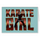 姿勢の明るく赤い文字そして空手の女の子。 すべてのレベルの武道の女性のためのTシャツ、スエットシャツ、マグ、ポスターおよび他のギフト。 空手のインストラクター、学生、黒帯、またはファンのためのカラフルなギア。
