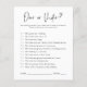 背景の色を変更するか、テーマに合わせてグラフィックを結婚追加する。もちろん遊、ブライダルシャワーでゲームをする必要はない。しかし、これを考慮しなさい:あなたはオールエイジのグループを持つだろう。ほとんどのゲストはパーティー前にお互いに会ったことがないだろう。これらのクラシックブライダルシャワーゲームのいくつかの混合は、氷を壊すために完璧な方法である。私たちの両面ゲームカードはエレガントシャワーに実用的な追加である。プロ仕様のカードは素早くカスタマイズ可能。デザインの右側カスタムにある[このデザインテンプレートを編集する]ボックスまたは青い[文字を編集すクリックる]ボタンを使用しての配置を行うと、フォントと色を変更し、さらに情報やデザインを追加して、このに語句を追加する。クリックカスタマイズ「続く」を選択して完全な編集オプションを開く。調整もし品(サンキューカード等)が必要な場合は連絡ご注文をカスタムお願い。****要カスタム求の場合は救済、この商品をカートに入れないで。代わりに、電子メールでリクエストをlauralise@iyhtvdesigns.comに送る商品へのリンクが利用可能になった時点で電子メールで送信される。そのリンクを使用して注文を行うことができる。48時間まで許可して。
