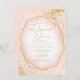 淡いローズゴールドの背景に、抽象的な細いゴールドラインと輝くライトニングエフェクトを加え、美しいウェディングスイートを作り上げました。ここに示されているリハーサルディナー招待状は、テキストを入れるための美しいグラデーションフレームも特徴としています。提供されたテンプレートを使用して、名前、結婚日、イベントの詳細を簡単に追加できます。このセットの他のピースと色の選択を表示するには、ID867を検索してください。