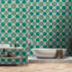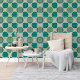 上品なダークグリーンブルーベージュグレープレイドパターン 壁紙