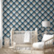 上品な濃いティール(緑がかった色)ブルーベージュタンプレイドパターン 壁紙