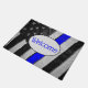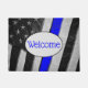 役員のフロントドアのために、この上品な薄い青のラインデザインは、黒と白のアメリカのフラグを備え、青の一つのと一致する青色の歓迎の単語を含むラウンド名パネルストライプ。文字のフィールドはテンプレートを作るためにあなたのための簡単カスタマイズだ。法執行支援を表示#leo #backtheblue #police
