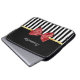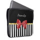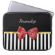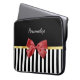 上品な赤い弓の黒と白ストライプの名前 ラップトップスリーブ