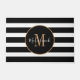 上品な黒と白の金ゴールドストライプモノグラム ドアマット