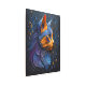猫の頭の美しいをスタイルで捉えた魅惑的なポートレート。この抽象芸術アートワークは、濃い日陰の青の背景に青、オレンジ、紫の色合いのエンボスラインを備えている。繊細なエンボス色の要素で飾られたこの巧妙な猫の視線の謎を発見。