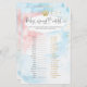 金ゴールドグリッターと水色ピンクと青の背景にスクリプトモダンフォントと金ゴールドクラウンを備えたベビシャワーゲームカーフェイクドは、性別のリビールパーティーに最適!裏は答え鍵。以下のコレクションのゲームを全てチェックして下さい。