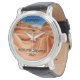 風光明媚な写真顔とブラックレザーストラップを備えた腕時計ユニークは、レティリー素晴らし、誕生日、父の日、クリスマス、または他の大事な行事のための贈り物である。時計顔は、アリゾナの遠くの砂漠の場所で横歩きの岩の形成の美しいを示すオリジナルの風景の写真である。オレンジ色とタン色は自然の美しいアートワーク。岩の横紋模様は何千年前に風や水による浸食によって作り出された。写真家の楽園!ハイカーはこの場所を愛している!文字は「世界一のパパ!」と名前だが、簡単に修正できる。All Rights Reserved © 2013 Alan & Marcia Socolik.