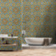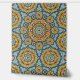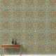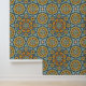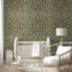 ミッドセンチュリーモロッコの青と黄色の皮とスティック壁紙。
