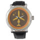 世紀半ばレトロのブラウンおよびオレンジジェット旅客機 腕時計