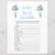 両面ブルーバルーン赤ちゃんシャワーゲームカード