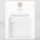 この両面ゲームカードは、前面に単語スクランブル、背面にビンゴを備え、赤ちゃんシャワーやベビー散水に最適である。この単語スクランブルビンゴゲームはボホベージュの水の色の熱気球を特徴とする。お祝いに最適男女兼用。このデザインは、「このテンプレートをパーソナライズすクリックる」でパーソナライズするか、または「デザインツールを使用して編集すもしる」で可能な方法でフォントを変更したり、色を変更したり、デザイン要素を配置したりす違うるでクリック、パーソナライズできます。回答鍵: 1.おむつ2.バシネット3.ボトル4.クリブ5.おしゃぶり6.表7の変更ぬいぐるみ8.ベビーカー9.ゴムダッキー(アヒルちゃん)10.毛布11.テエ12.式13.ハイチェア14.モバイル15.温度計16.ベビー17.ミルク18.ブース19.一辺20。テディベア