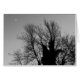 半月の冬の午後の空にシルエットされた木の大気の黒と白の写真。この木は中世の音楽の一種に奇妙な自然精神踊りを擬人化しているように見える。