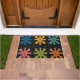 このドアマットは、1世紀半ばのデザインで、レトモダンロな色のスターバストが黒のフィールドに描かれています。