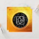 カスタマイズ可能な白い豚の漢字+白い文字が入った、黄金のテクスチャーの背景と黒白の丸い模様が入った四角いフラットカード。 付属の長方形のステッカー、グリーティングカード、ポストカードなど。 2019年の中国の豚の新年または誕生日(豚年生まれの人)に最適です。