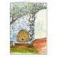 養蜂家のskep、中庭の石塀の近くに坐るミツバチの巣の元の水彩画。