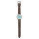 まだはじめのうちは革バンドが固くてつけにくかったですが、しばらく使っていれば大丈夫です。