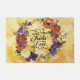 doormat感動的は、美しい素朴な水色のフローラ紫、焦げたオレンジ、青と黄色の花と緑を描く。聖書もしの詩篇136:1の一部を掲げ、「主に与えよ感謝してい」を掲げている。