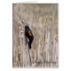 乾燥した草の上に生まれた赤い翼を持つブラックバード