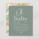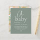 この美祝しいセージ緑の予算の赤ちゃんシャワーの招待であなたの小さな1の来る来る。このデザインの前面には、スクリプトレタリングとセリフ小文字の組み合わせで「オベビー」が用意されている。下の赤ちゃんシャワーイベント詳細と母名はクラシックセリフタイポグラフィです書。文字の底には小さな手描きハートがある。背景は落ち着いたセージの緑色。カードの背面には、ニュートラルなアーストーンのカラーパレットでレトロなフローラルパターンが表示される。この魅力的デザインは春や夏のボホモダン赤ちゃんシャワーに最適で、背景色はイベントに合わせて完全にカスタマイズ可能。コレクションを参照してよりミニマルなベビーシャワー招待状。Zazzleの使簡単デザインツールを使って、あなたのイベントのための特別な招待を作ることは決してより簡単ではない。Zazzleの予算選択の一部として、このシートは標準の招待状サイズまたは紙品質ではない。このデザインもしは、私たちの店で見つけることができる招待カード上で、またはあなたの選択の製品に転送するためにZazzle Make Machineを使用して使用する。