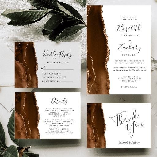 Elegant Mocha Brown Gold Agate White Wedding Suiteデザイン: The Golden Acanthus