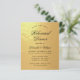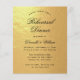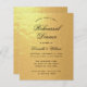 黒と金の予算リハーサルディナー招待状で、黒い文字が偽の金箔の背景にのみ書かれています。「リハーサルディナー」という言葉と名前は、エレガントなカリグラフィーで書かれています。