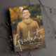 表には手書き風フォントのフルブルームの肖像写真と名前、卒業の詳細が。 裏には2枚目の写真と追加の詳細が記載されています。 このデザインをカスタマイズするには編集ボタンをクリックしてください。