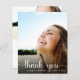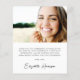 卒業後の写真フレンドリーを白書で写し出した予算の卒業式のサンキューカードで感謝していは、白いタイポグラフィと名前とクラスの年を入れた白い文字でモダン表したもの。反対側では、追加の写真を追加し、メッセージをパーソナライズして感謝してい、署名のようなスクリプトに名前を追加する。