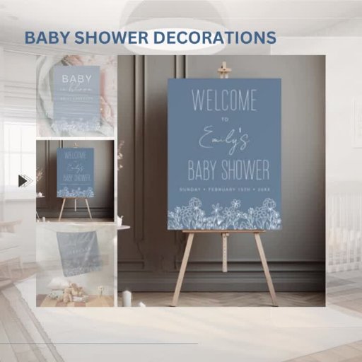 道祝に美しい小さな山花と喜びの新しいバンドルの到着 – と赤ちゃんシャワーを手に入れた。愛と幸福に満ちた午後の私たちと一緒に行く私たちは近い将来の親を尊重する。この招待状には素晴らしほこりっぽい青い背景があり、ワイルドフラワーの配列がアクセントにな鮮やかっている。