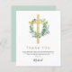 バジェットセージ緑のフローラ少年のユーカリと金箔クロス植物緑の水色宗教的な最初の(1番目)聖なるコミューニオンサンキューカード。