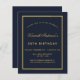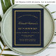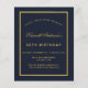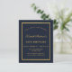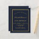 濃い青の背景、飾金ゴールドフレフェイクーム。名前とパーティー・詳細のパーソナライズおよび追加名前は手書文字のスタイルスエレガントクリプト付き。背面:青の背景。