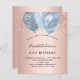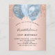 21エレガント歳(または任意の年齢)誕生日。バラ金ゴールドフェイクの金属的な背景。バラ飾金ゴールド、ピンクフェイクのグリッタードリッ絵を描プ、ドリップの外観と青いバルーンと。名前、年齢21、およびパーティー詳細をパーソナライズして追加。名前は手書入力のスタイルスクリプトで指定する。ネイビーブルーの文字