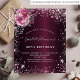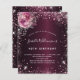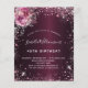 40エレガント歳(または任意の年齢)の誕生日パーティー。ブルゴーニュフェイクーのメタリックな背景色。ピンク飾のフェイクグリッターの塵と花模様と。名前、年齢、およびパーティー詳細をカスタマイズして追加する。名前は手書文字のスタイルスクリプト