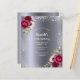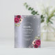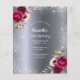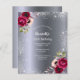 前:50歳の誕生日パーティーへの招待。暗い銀フェイク色の金属的な背景。暗飾紫とブルゴーニュとバラピンクの水色の花を持つ。名前とパーティー詳細のテンプレート。名前は手書で書かれたスタイルの台本、明るい灰色の文字で。冬のパーティー!