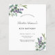 前面スタイリッシュに白い背景。ユ飾ーカリとラベンダーの花模様名前と詳細のパーソナライズと追加背面:緑のグレーの背景。