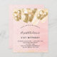 21エレガント歳(または任意の年齢)誕生日。グラデーション赤面のピンクの背景、黄金のグリッター、およびフェイク金ゴールドバルーン。名前、年齢21、およびパーティー詳細をパーソナライズして追加。名前は手書文字のスタイルスクリプト