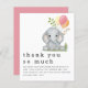 予算エレファントガール赤ちゃんシャワーフレンドリーピンクありがとう予算4.5インチx 5.6インチの代替。セミグロス110 lbカード素材またはサテン仕上げ80 lbシンナー紙素材。封筒はオプションの追加カードで、カードサイズより少し大きい。自分の詳細に文字を簡単にパーソナライズ。