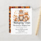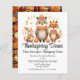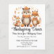 帽子とスカーフと小さなカボチャを身に着けたキツネの家族と反対側に離れイラストレーションとカボチャを持つ秋のプライドとかわいい感謝祭。この招待状はディナー詳細でパーソナライズできる。