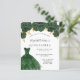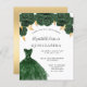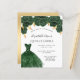 15モダン歳のスタイリッシュ誕生日パーティー、キンセアニラへの魅力的な招待。前面:緑のグリッターの塵と白い背景フェイク、エメラルドグリーンのドレスと緑のバラ、花模様。名前は手書文字のスタイルスモダンクリプト付き。カスタマイズしてパーティー詳細を追加する。戻る:フェイク金ゴールド背景。