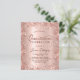 バジェットモダンバラ金ゴールドグリッターメタリックQuinceaineraバースデーパーティ招待状。このカーかわいらしドガーリーデザインは手書き書やタイポグラフィフォントの台本スタイリッシュ、グリッターピンクやバラ金ゴールドがブラッシングされた金属箔の背景と緩いグラム輝くフレームを備えのまわりにている。赤面ピンクのローズ金ゴールド15th誕生日パーティーに最適。