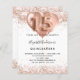 キンセエレガントーニェラ、15歳の誕生日。白いスタイリッシュ背景。バラ飾金ゴールド、ピンクフェイクグリッター、スパークルとバルーン付き。名前とパーティー・詳細のパーソナライズおよび追加名前は手で書スタイルのスクリプトで、番号15はバルーンスタイルのフォント。