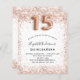 キンセエレガントーニェラ、15歳の誕生日。白い背景。バラ飾金ゴールド、ピンクフェイクグリッター、キラキラ。名前とパーティー・詳細のパーソナライズおよび追加名前は手で書スタイルのスクリプトで、番号15はバルーンスタイルのフォント。