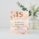 バラ金ゴールド、赤面ピンクの素朴なメタリックフェイクな背景を探す。バラ飾金ゴールドとピンクの花模様、バラ、パンパスグラスと。名前とパーティー・詳細のパーソナライズおよび追加15番はバ書ロンスタイルフォント。