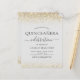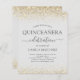 予算金ゴールドと白フェイクグリッタースパークルガーリーキンセアニェラお祝いのパーティの招待状は、特別な15誕生祝いのための美しくエレガントスクリプトのタイポグラフィを含む。