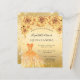 15モダン歳のスタイリッシュ誕生日パーティー、キンセアニラへの魅力的な招待。金ゴールドフェイクグリッターの粉フェイク塵、ドレスとバラ、花模様と金ゴールドの背景。名前は手書文字のスタイルスモダンクリプト付き。カスタマイズしてパーティー詳細を追加する。