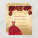 15モダン歳のスタイリッシュ誕生日パーティー、キンセアニラへの魅力的な招待。金ゴールドフェイクグリッターの粉フェイク塵、ドレスと赤いバラ、花模様と金ゴールドの背景。名前は手書文字のスタイルスモダンクリプト付き。カスタマイズしてパーティー詳細を追加する。