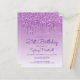 このトレンディー21歳の誕生日パーティの招待状は、薄紫のグリッタードリップと紫の背景を備え縁どたフェイクドリップと紫のバックグラウングラデーションドを備えている。「18誕生日」と名誉のゲストの名前は紫の手書きスクリプトに現れカジュアル、残りの部分はサンセリフフォントでカスタマイズ可能な文字を持つ。同じ紫色のグリッタードリップデザインが裏面に表示される。
