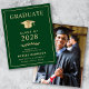 予算エレガント的なフレンドリーグリーン卒業発表と金ゴールドの卒業上限大学院の名前、学年、学校、大学、学位や光金ゴールドタイポグラフィの名誉をパーソナライズす専攻のるモダン。卒業生の写真がカードの裏に収まる。