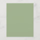 シンプルセージ緑のリハーサル夕食の結婚式の招待。4.5インチx 5.6インチの低価格の代替品。デフォルトのオプションであるセミグロス110 lbカードストック(招待状の場合は厚い)またはサテン仕上げ80 lbシンナー紙ストック(エンクロージャの場合は理想的)で利用可能。封筒はオプションの追加カードで、カードサイズより少し大きい。簡単あなたの言葉でパーソナライズする。また、文字と背景色は、「続もし行」オプションでカスタマイズも変更できる。